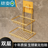 敬平高颜值肥皂盒壁挂式沥水免打孔双层轻奢香皂置物架卫生间收纳器 金色壁挂肥皂盒(双层)