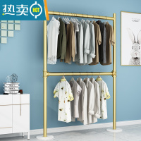 敬平衣帽架简易落地晾衣杆租房省空间晾晒挂衣服架室内床头挂衣杆带轮 纳米金色长100高175配2.0轮子晾晒架