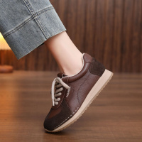 头层牛皮单鞋女2026春季新款松糕厚底圆头复古运动休闲鞋妈妈鞋