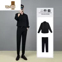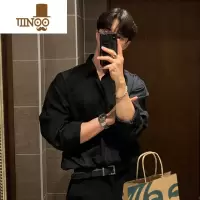YANXU黑色衬衫男长袖感痞帅潮轻熟风休闲套装痞帅白dk垂感衬衣