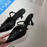 SUNTEK2023新款高跟鞋女夏网红细跟柳钉尖头黑色裙子御姐轻熟风配高跟鞋
