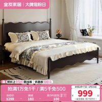 全友家居法式复古橡木实木床1.8x2米主卧室双人床小户型高脚床