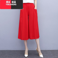 YIBUSHENG七分裤女季薄款绸裤子中老年妈妈阔腿裤大码宽松裙裤休闲裤