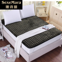 珊诗丽法兰绒薄床褥子1.5m床护垫1.8m床双人榻榻米床垫被学生1.2折叠军绿色法莱绒剪花
