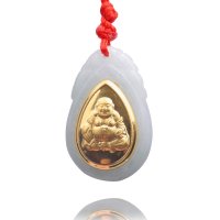 梦克拉 Mkela 足金金镶翡翠笑佛吊坠 善缘 白底种 吊坠 翡翠 女士 NGTC