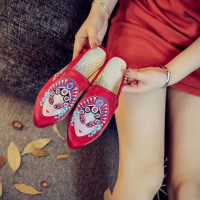 2017新款老北京拖鞋2017夏季中国风原创绣花鞋西厢记民族风尖头女凉鞋