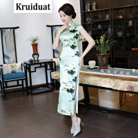 奈琴尔旗袍长款修身显瘦改良宴会日常丝绸2017新款修身少女旗袍连衣裙夏1969