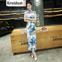 奈琴尔2017新款夏季改良时尚大码旗袍长款修身性感旗袍裙少女日常连衣裙YQ916