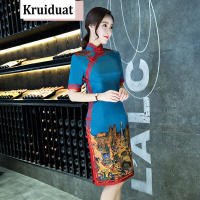 奈琴尔2017新款春夏装仿丝时尚改良复古修身显瘦少女日常短款旗袍连衣裙142