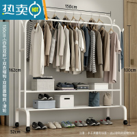 敬平简易衣帽架双杆式晾衣架落地室内折叠挂衣架子家用卧室衣服收纳架 150cm-[升级款]白色双杆+双层置物网+双衣帽钩+