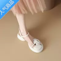 SUNTEK 设计感~圆头花朵包头凉鞋女2023夏季时尚舒适厚底粗跟女鞋
