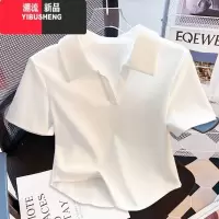 YIBUSHENG2024新款白色正肩polo领短袖T恤女减龄修身百搭短款体恤上衣
