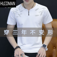 HLCOMAN冰丝透气短袖t恤男装夏季V领修身潮牌白色半袖简约打底衫