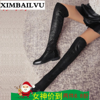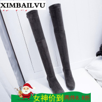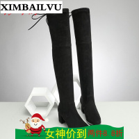 家柏饰(CORATED)靴子防筒高筒过膝靴弹力长靴女不筒固定无痕魔术贴松紧带