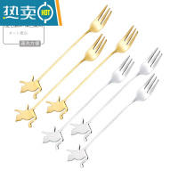 敬平水果叉304不锈钢家用可爱卡通儿童水果签ins风欧式果插叉子套装 304金色(6只)[水果叉]
