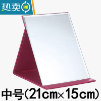 敬平镜子化妆镜折叠台式便携随身高清学生公主桌面梳妆镜 中号(21cm*15cm)[]玫红色便携式用镜