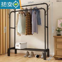 敬平简易衣架落地立式晾衣架单杆式阳台晒衣服架子家用卧室宿舍挂衣架 110CM+[黑色双杆]+加厚款 中