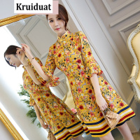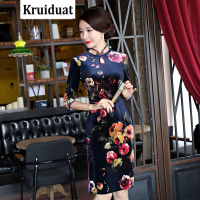 奈琴尔2017新款春夏装仿丝时尚改良复古修身显瘦少女日常短款旗袍连衣裙142
