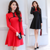奈琴尔2017喇叭袖复古改良版旗袍连衣裙短款少女时尚短款日常旗袍QZ879