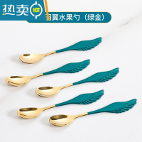 敬平水果叉子家用加厚304不锈钢收纳罐水果签果插叉子高颜值 [绿金]羽翼304钢勺★5只装