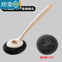 敬平长柄锅刷厨房清洁洗锅刷子家用去污多功能洗碗刷锅钢丝球刷锅器 米色长柄刷1把+10个替换头