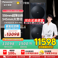 松下[吴磊同款]小薄荷S5 洗烘套装 550mm超薄全嵌 10kg滚筒洗衣机+变频热泵烘干机 M2F1+M2NR1