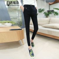 莞馨201春秋季新款简约舒适修身休闲裤男口袋金属挂链修身休闲长裤黑色