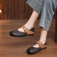 头层牛皮单鞋女2026春季新款浅口平底卡扣复古圆头软底百搭豆豆鞋