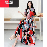 YIBUSHENG慵懒风特大码300斤季韩版短袖胖MM遮肉条纹露背长款T恤连衣裙女