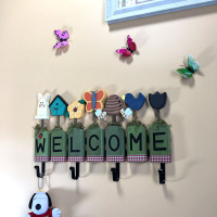 美式乡村zakka挂钩创意小鸟木质挂衣架墙面钥匙架房间装饰衣帽架