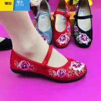 聚范妈妈鞋女鞋正宗中老年时尚款老人绣花女软底帆布绣花鞋