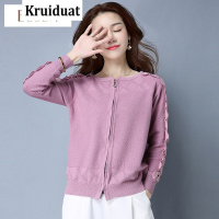 Kruidvat2017春装新款色韩版宽松拉链口袋开衫女韩国针织衫开衫外套M9