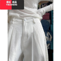 YIBUSHENG奶白色棉麻阔腿裤女新款休闲裤宽松显瘦垂感质感不透窄版直筒裤