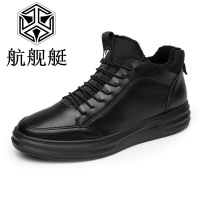 男鞋子冬季新款牛皮高帮休闲鞋韩版百搭青少年学生加绒保暖大小码板鞋男黑色
