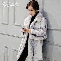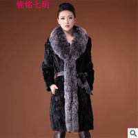 锦铭七玥速麦通供货仿水貂皮草女仿皮草狐狸毛领兔毛中长款外套皮大衣