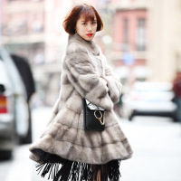 旗下海宁2018新款水貂皮草貂皮大衣女整貂中长款裘皮大衣女