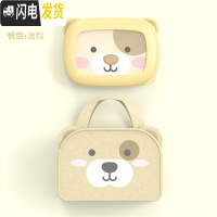 三维工匠韩国饭盒便当分隔学生餐盘保温儿童不锈钢餐盒 黄色小狗餐盘+包