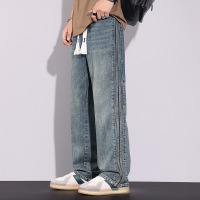 美式复古抽绳牛仔裤男 源头工厂 侧边三条杠宽松阔腿男士水洗长裤