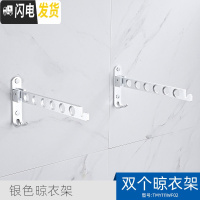 三维工匠免打孔小型折叠晾衣架壁挂式室内迷你晒晾衣杆墙上挂衣服隐形 银色-两支装-打孔/免打孔双安装 小