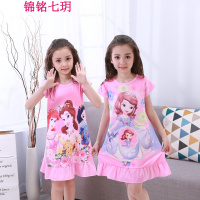 锦铭七玥夏季儿童短袖睡裙女童棉质睡衣冰雪奇缘裙子女孩童装中大童居服