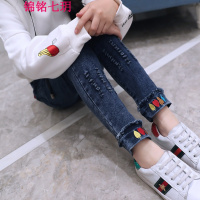 锦铭七玥女童长裤春秋款铅笔外穿中大童弹力修身脚牛仔单裤子黑色潮