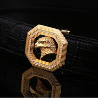 捷豹鳄鱼皮皮带 皮带男士真皮平滑扣腰带男韩版潮青年裤带