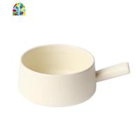 日式创意陶瓷平底汤锅单柄砂锅白色小奶锅带手把面碗 没盖子 FENGHOU 黑色