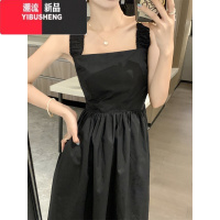 YIBUSHENG背带连衣裙女季2024新款韩系chic中长款收腰显瘦褶皱气质A字裙