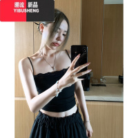 YIBUSHENG黑色荷叶边不规则吊带连衣裙女季露肩气质修身内搭包臀鱼尾长裙