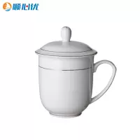 顺心优 陶瓷带盖金边东南海茶杯 400ml/个