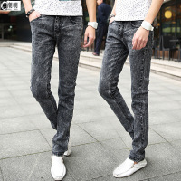 C2潮朝2017年新款男士韩版牛仔裤修身弹力小脚裤青春休闲紧身铅笔裤烟灰雪花裤潮流时尚潮男