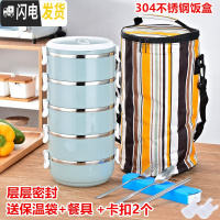 三维工匠密封304不锈钢保温饭盒成人可爱便当盒2学生3多层4日式上班族餐盒 五层北欧蓝(送保温袋+餐具)