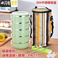 三维工匠密封304不锈钢保温饭盒成人可爱便当盒2学生3多层4日式上班族餐盒 五层北欧绿(送保温袋+餐具)