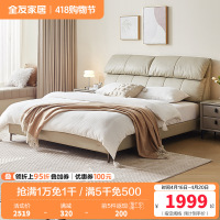 全友家居现代简约卧室家具进口头层牛皮皮床舒适饱满床屏1.8m双人床皮艺床软床